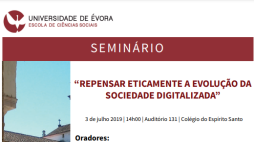 Seminário “Repensar Eticamente a Evolução da Sociedade Digitalizada”Decorre hoje, 3 de julho 2019, a partir das 14 horas, na Escola de Ciências Sociais da Universidade de Évora (Auditório 131 do Colégio do Espírito Santo).O Seminário tem como objetivo debater o tema…
